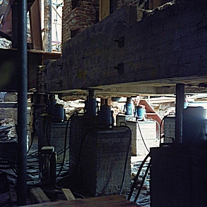 - Zicht op de fundering van de Groothoofdspoort tijdens de restauratie.