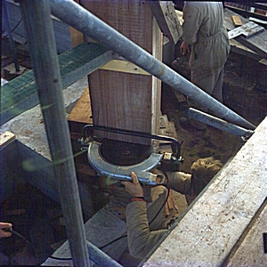 - Werkzaamheden aan de koepel van de Groothoofdspoort, tijdens de restauratie.