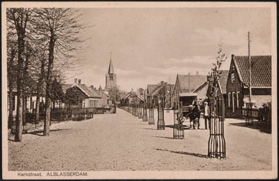 De Kerkstraat met zicht op de Hervormde Kerk (Oude Toren) in Alblasserdam.