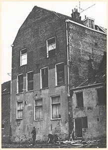 De achterzijde van aan de Vest nabij de Veststraat gelegen slooppanden.