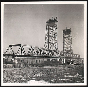 Botlekbrug, hefbrug in de A15 over de Oude Maas.