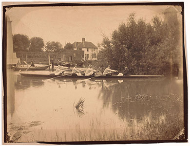 Leden van de Koninklijke Dordrechtsche Roei- en Zeilvereniging.in een balkengat aan de …