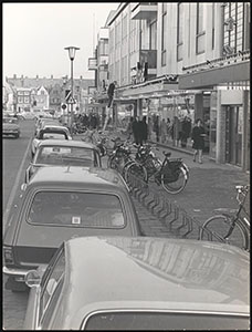 - auto's fietsen / rijwielen fietsenrekken / fietsenstallingen lantaarns / straatverlichting schoenwinkels / schoenmakerijen winkels