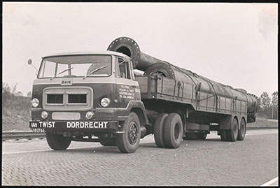 Vrachtwagen van transportbedrijf Willem van Twist op de Wieldrechtseweg.