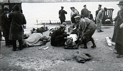 - Militaire oefeningen werden gehouden i.v.m. de gespannen situatie in de wereld. Hier een oefening van een gasaanval op de Buiten Kalkhaven.