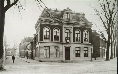 Spaarbankgebouw op de hoek Bagijnhof-Johan de Wittstraat omstreeks 1905