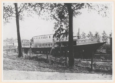 - Het fregat H.M. Bonaire in het Wantij afgemeerd en dienstdoend als logies voor de leerlingen van de Marine Machinistenschool die daar aan de wal gevestigd was van 1915 tot 1923.