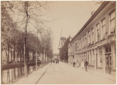 - De Blekersdijk richting Cornelis de Wittstraat met de molen De Maagd.