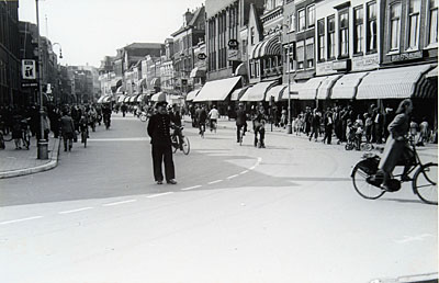 - fietsers oorlogstijd politie winkelend publiek