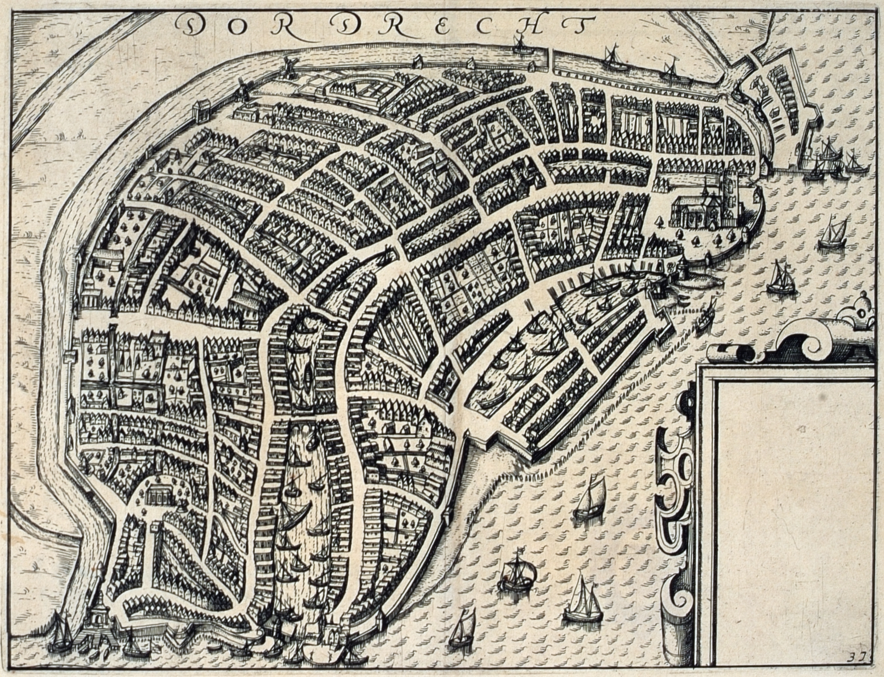 Plattegrond van Dordrecht, omstreeks 1575.