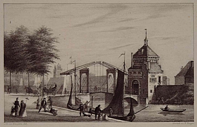 - Spuipoort, ca. 1854. Gezien vanaf 's Landswerf.