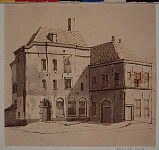 - Lakenhal, ca. 1844; gezien vanaf de Varkenmarkt.