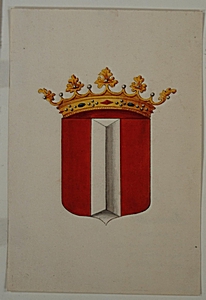 - Tekening van het wapen van Dordrecht naar een glasschildering die was aangebracht op het raam van de werkkamer van Simon van Gijn, Nieuwe Haven 29
