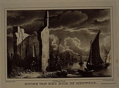 - hxb: 12,5 x 17 cm. Naar J.F. Christ. Uit: 'Oud-Nederland in de uit vroeger dagen overgebleven Burgten en Kasteelen', C.P.E. Robidé van der Aa. Nijmegen 1846.