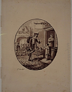 - Adrianus van Altena als sergeant-majoor bij het 88e cohortin het Franse leger, gaat in 1813 gewond op krukken door de straten van Frankfurt