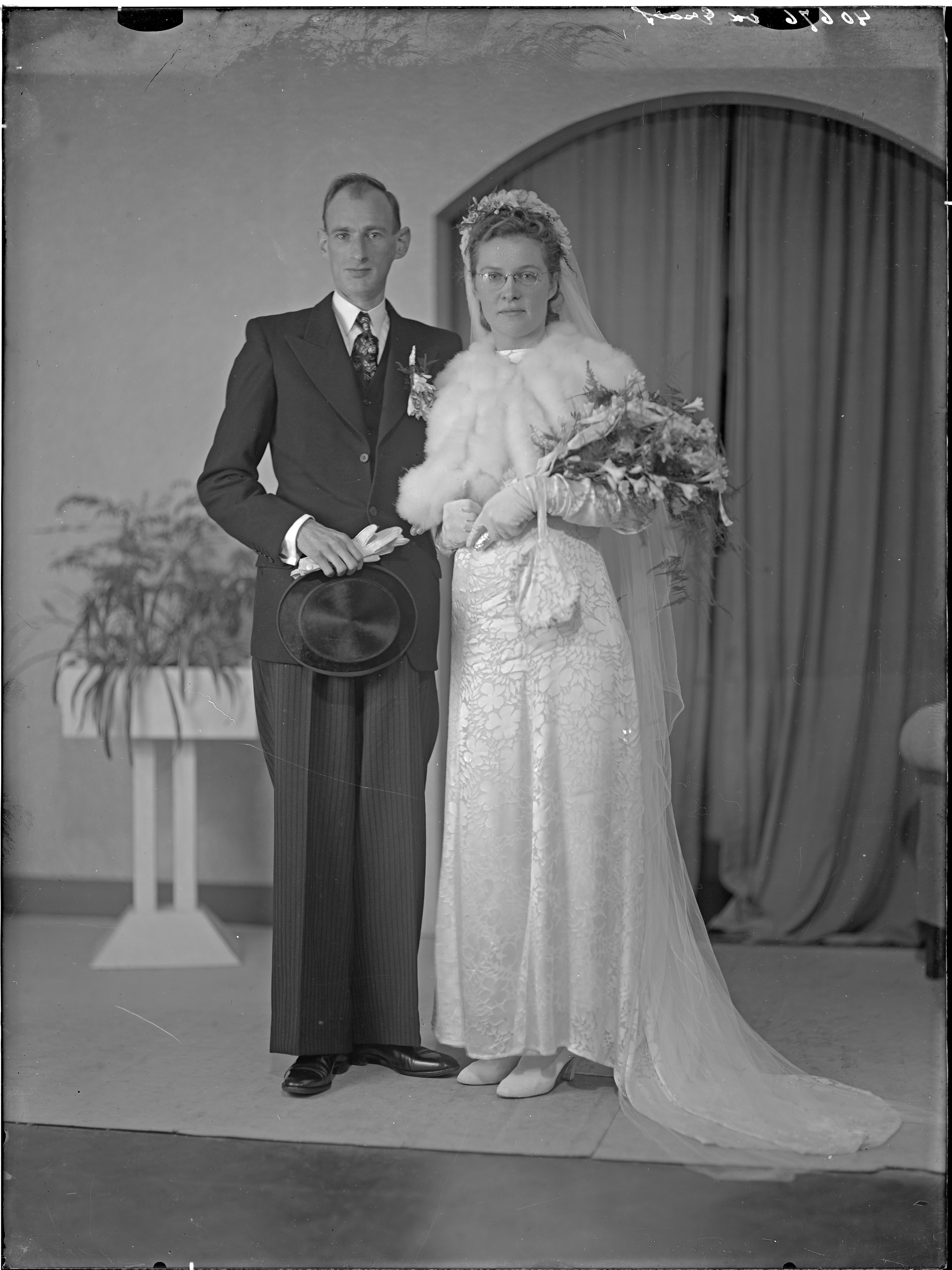 huwelijksfoto, bruidspaar --- 29-12-1943 fotonummer: 40676 v.d. Graaf Verl. Pr. Hendrikstraat 38 Zwijndrecht [bron: www.dordtenazoeker.nl]