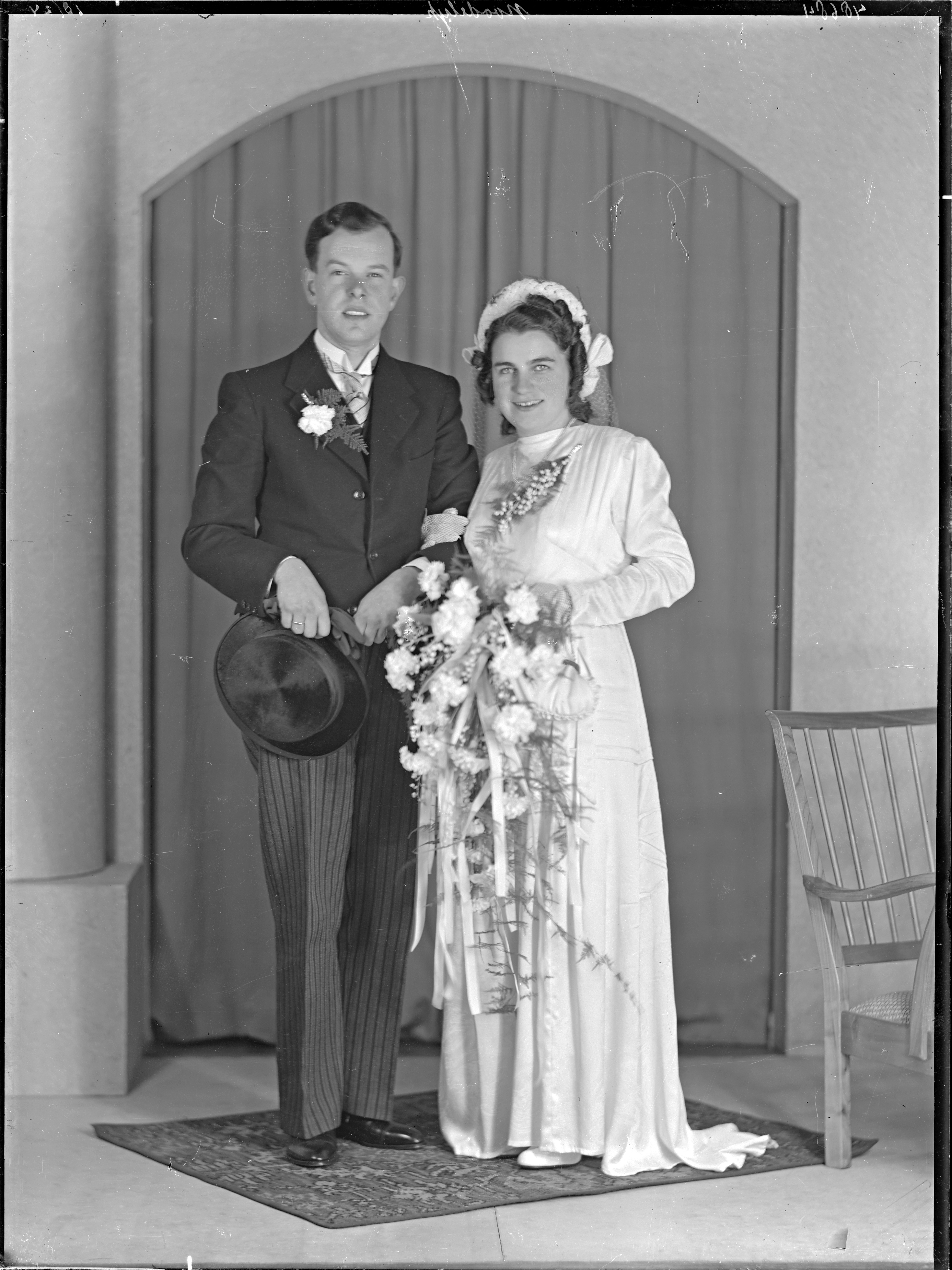(in de rand 'nr. 48684 NOODELIJK') huwelijksfoto