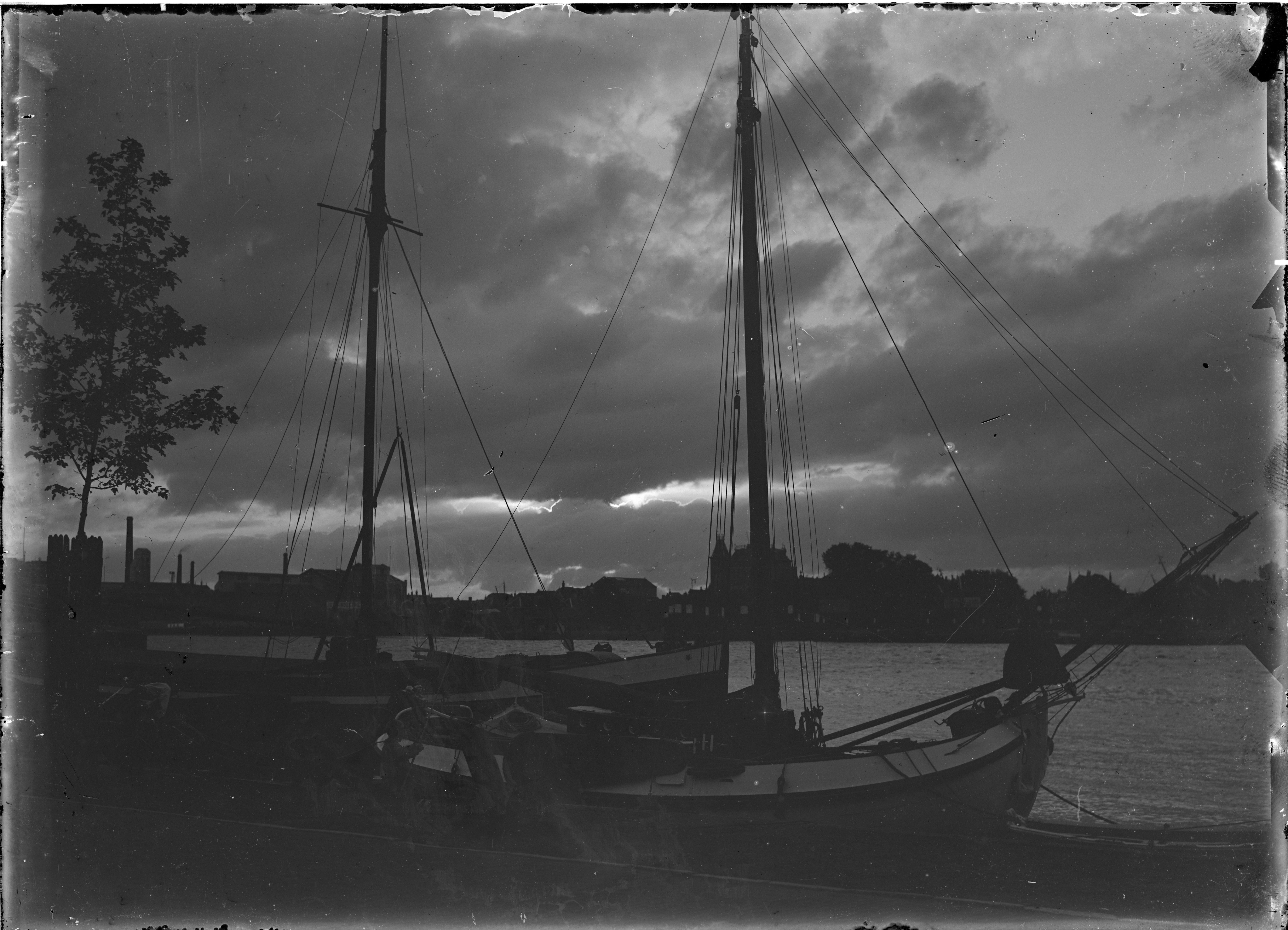 Oude Maas vanaf de Buiten Walevest. Midden Hotel het Witte Paard aan het Zwijndrechts Veerhoofd.