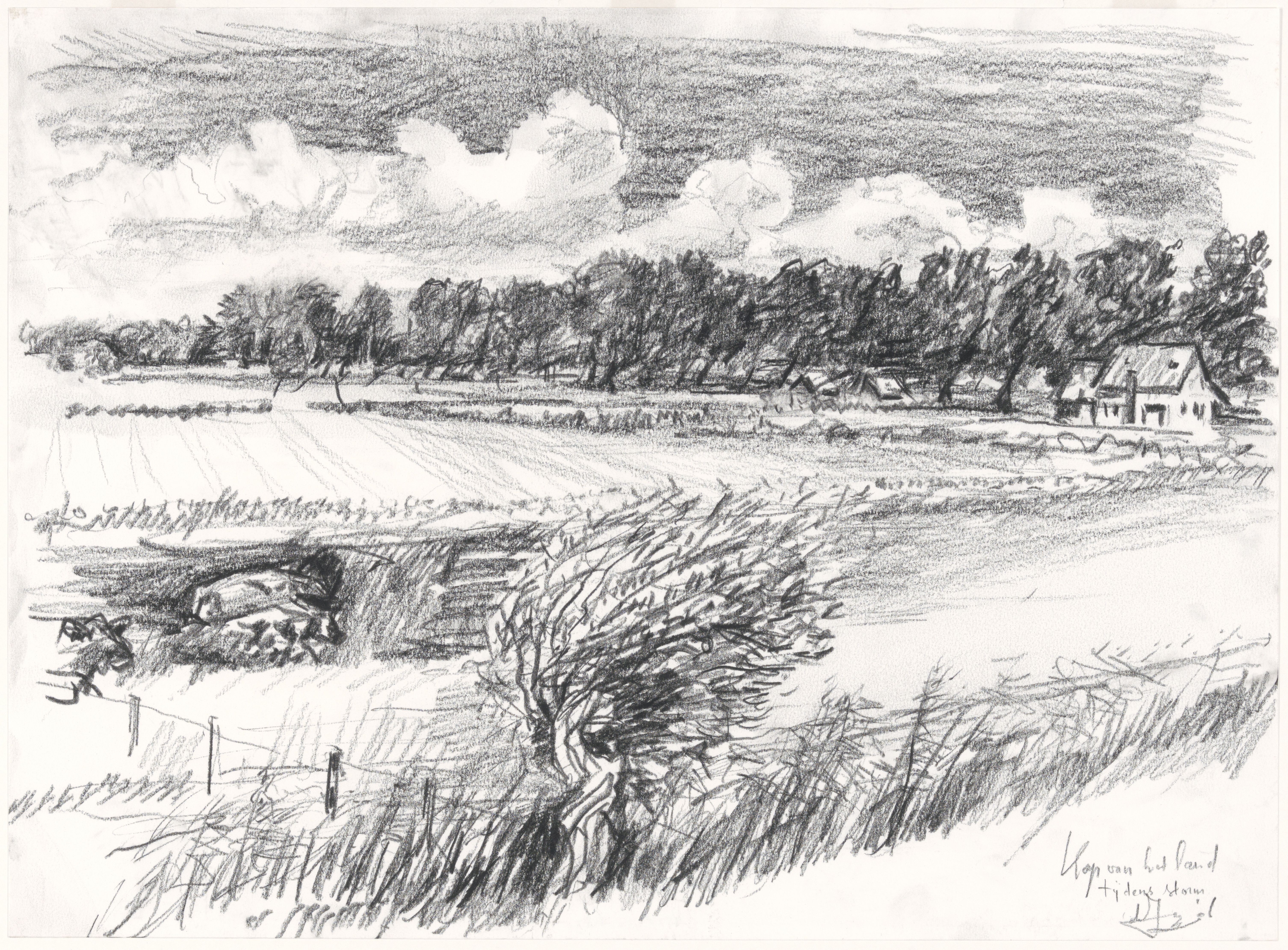 tekening Kop van het land tijdens storm (de Jong 1906?)