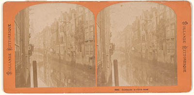 - Stereofoto van de Voorstraatshaven naar het oosten, richting Pelserbrug. Links de Grotekerksbuurt, rechts de Voorstraat.