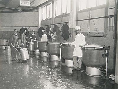 - fabriekshallen keukens oorlogstijd personeel / werknemers voedselvoorziening