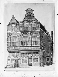 - Het huis Sint Joost op de hoek van de Aardappelmarkt en de Kuipershaven.