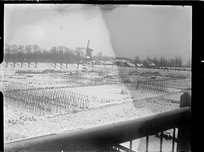 - Molen De Nagtegaal aan de Noordendijk vanaf een huis aan de Van Slingelandtlaan.