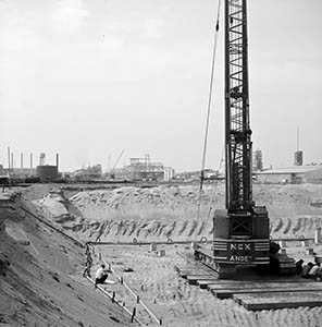 Aanleg van de rioolwaterzuivering ten noorden van de Baanhoekweg.