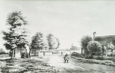 De Oudendijk op de voorgrond, de Krispijnseweg op de achtergrond. Links de buitenplaats …