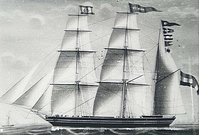 Driemastbark Timor, gebouwd bij de werf van C. Gips en zonen in 1840 vergaan in 1856 …