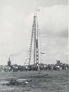 - Het slaan van de eerste paal voor de bouw van de elektriciteitscentrale aan de Baanhoekweg. Met op de achtergrond Huis te Merwede