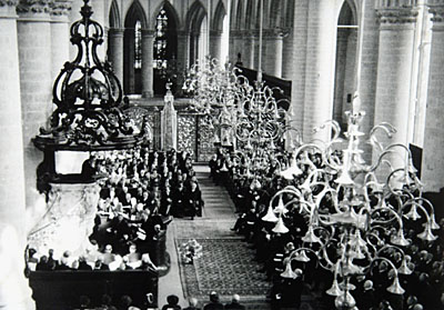 - interieurs kerken kroonluchters openingen preekstoelen