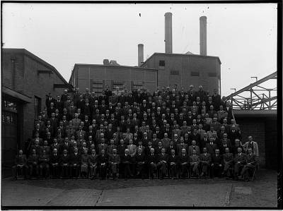 - elektriciteitscentrales fabriekspijpen / schoorstenen groepsportretten personeel / werknemers