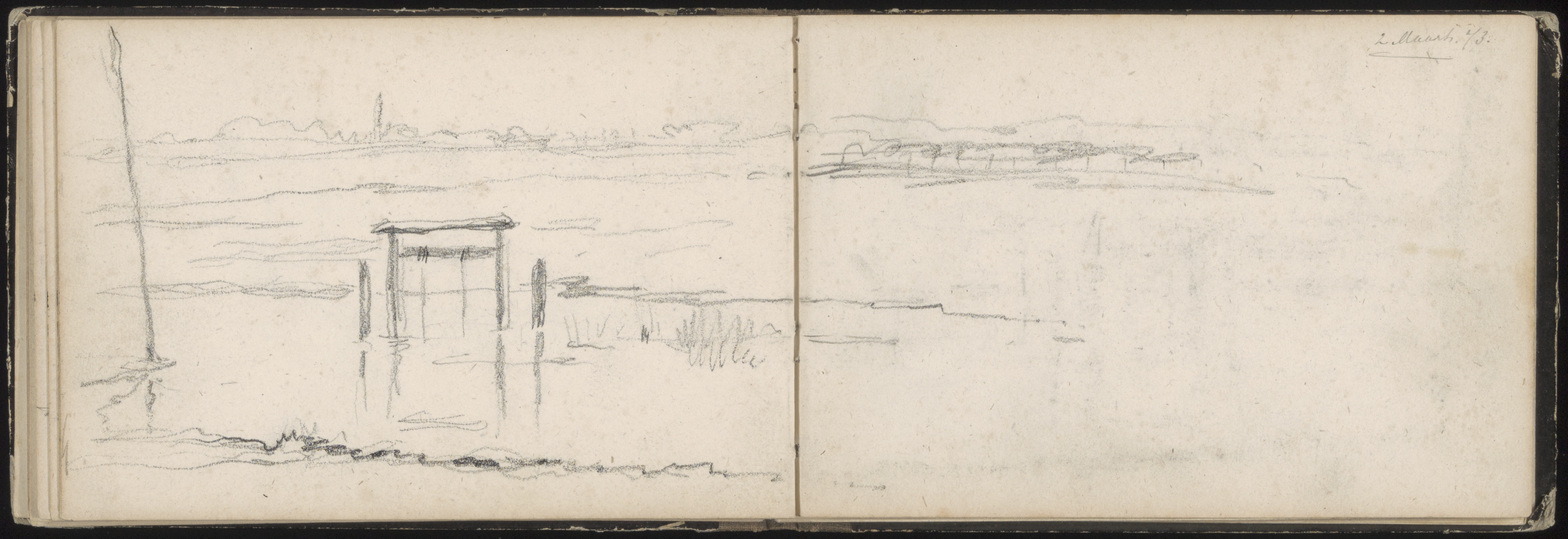 (2 Maart 1873, sloot, landschap) schetsboek Bendorp 1861-1882 [Carel Frederik Bendorp (de jonge) 1819-1897]