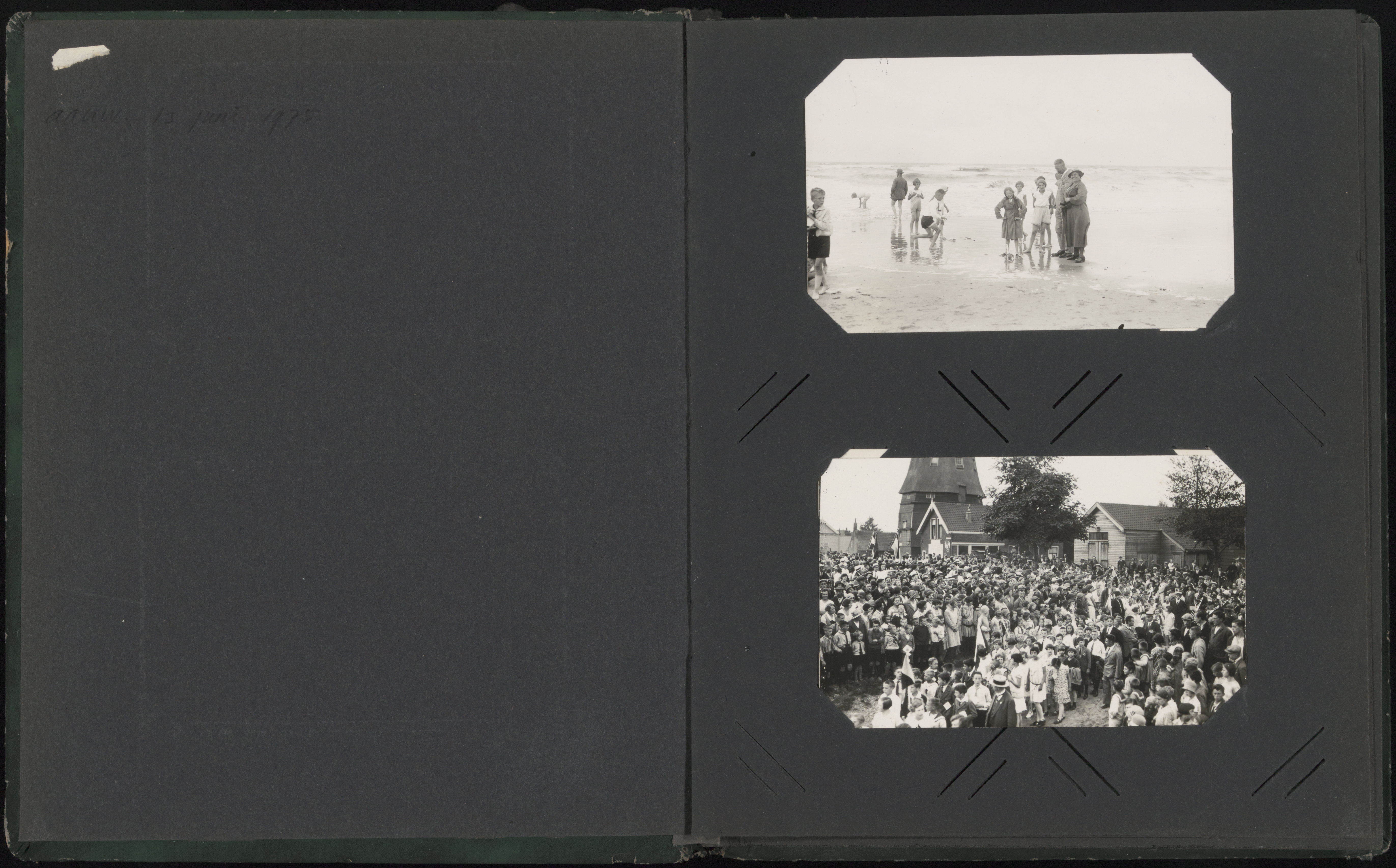 =================================================================== Vacantie-Kinderteest 1928. =================================================================== Al in de vroege uren van dezen Zaterdag zijn de straten van de nog slapende stad vol blij gezang en geluid. Kinderen, met vroolijke opgewekte gezichtjes, marcheeren‚ onder geleide van even opgewekte onderwijzers en onderwijzeressen, van verschillende stadsgedeelten naar een centraalpunt, het Beverwijksplein. Zon in hun oogen, een lach om den mond en een lied op de lippen! Vanwaar die vroolijkheid en blijheid in dit vroege morgenuur? ’t Is feest vandaag, groot feest, ’t is ‘t Vacantie-Kinderfeest. De kinderen van de hoogste klassen van alle lagere scholen, de bijzondere en openbare, gaan gezamenlijk uit, heerlijk uit, ongedwongen feestvieren aan zee, ver weg van de dagelijksche omgeving, buiten de engestads- straten. Rijk en minder rijk, armen minder arm, alles gaat mee. Standen en geloofsverschillen bestaan nu niet. Er is pret, en het vooruitzicht op een heerlijker dag. ’t Is nog vroeg en de lucht is omhangen met een rozig-grijs wolkengordijn. Maar de zon zal dit straks openschuiven; dit is tenminste de afspraak. Want er moet zon zijn, overal, niet alleen in de talrijke kinderhartjes. =================================================================== Het vertrek. =================================================================== Op het Beverwijcksplein. Zes klokslagen golven door de heerlijk-frissche ochtendlucht. Daar komen ze aan, van alle kanten, de blije kinderen, ordelijk gaat het opstellen van den langen stoet, trots de groote drukte. De — plaats, waar elke groep moet komen te staan, is immers van te voren bepaald: Ten overvloede heeft elke afdeeling een vlag en dragen de kinderen, die in een bepaalde afdeeling thuis hooren, een kaart in kleur overeenkomend met de vlagge-kleur. Hoog steken de gekleurde vlaggen boven allen uit. De plaatsen zijn dus gauw gevonden, ook de twee afdeelingen van het Dordtsch Harmoniekorps en het tamboer- en pijperskorps „Jubal“ rijen zich in den stoet. Op het plein is ‘t een fleurige doening. Vader en moeders geven hun kroost nog tal van raadgevingen; als: voorzichtig zijn, goed oppassen, en wat dies meer zij. Kinderen staan te springen van pret of praten druk snaterend met klasgenootjes, kennisjes of begeleiders. Precies 6.10 wordt bij den kop van den stoet, die in de Ouden Havenstraat staat, met een rood-wit-rooden wimpel gezwaaid. Het muziekkorps zet den Vacantiekinderfeest-marsch in, en voorwaarts-marsen de pret in! De blijde uittocht vangt aan, de muziekensemble’s schallen de pittige marsen de lucht in, de kinderen juichen „’t is feest, Ja ’t is feest, Vacantie-kinderfeest". Omstuwd door veel belangstellenden — trots het vroege uur zijn ’t er vele — trekt de kleurrijke, vroolijke optocht langs de Oudenovenstraat, Johan de Wittstraat, Albert Cuypsingel, Van Strijsingel, Mij. Dordrechtstraat. Havenstraat, Korte Parallelweg en ‘s Gravendeelschedijk naar ’t voormalige Veilingsterrein bij den weeskinderendijk. Hier ligt de groote raderboot „Reederij op de Lek V” gereed; rijk bevlagd. De commissie voor ’t V.K.F. bezit uitnemende organisatoren. De vlugge opstelling van den stoet op ’t Beverwijcksplein was hier een bewijs van. Het snel plaats nemen op de boot van de ruim 700 kinderen is een tweede bewijs. Alles gaat ordelijk, geregeld. Er is geen wanorde, geschreeuw en gegil. Te ongeveer kwart voor 7 kunnen we al vertrekken, Gelui met een bel, de planken worden ingehaald, touwen los en daar gaan we. Op den wal gezwaai met zakdoeken. De kinderen wuiven terug, juichen. De muziek schettert en de boot met haar vroolijken last stevent de Oude Maas af. De wuivenden aan den kant verkleinen, het silhouet van de stad — prachtig die oude stad in gulden nevel — vervagt, op de boot wordt het rustig en zien de kinderen genietend naar het prachtig gezicht van de rivier in morgenlicht. =================================================================== Onderweg. =================================================================== Na een klein half uurtje varen wordt door lieftallige bedienende dames het ontbijt rondgediend. Twee glazen melk, ’t broodje met koek, ’n krentebol en ‘t pakje biscuits: ‘t vliegt naar binnen, ’t Is te begrijpen, de frissche buitenlucht maakt hongerig. Ondertusschen passeert de boot met de vroolijke passagiers Puttershoek en Oud-Beijerland. De zon heeft het wolkengordijn open geschoven en toovert gulden glansen op het nauw gerimpelde water. De feestliederen klinken als het ontbijt heerlijk opgepeuzeld is, weer op. De schepen, die gepasseerd worden, worden met gewuif en luid gejuich begroet. De onvermoeide ensembles van het. Dordtsch Harmonie korps spelen onafgebroken vroolijke marschen en liedjes. en doen werklui op de baggermachines van den Waterweg Dordt naar Zee Indianen-dansen uitvoeren. De „Reederij op de Lek V” stoomt intusschen in gestagen gang zeewaarts. Van deze gelegenheid maken wij gebruik even te vertellen wat er alzoo noodig is om de 740 kinderen, 47 geleiders(sters), de muziek en de gasten van het V. K. F. comité, het noodige voedsel te verschaffen. Meegenomen werden 935 broodjes. 4675 krentekoeken (1600 hiervan zijn geschonken door de Coöp. bakkerij „Vooruit”). 425 L, melk. 450 L. limonade, 90 KG. biscuit, in pakjes van 1/2 ons, 900 reepen kwatta en 1800 ansichtskaarten. Deze zijn natuurlijk niet om op te eten! Voorwaar een respectabele hoeveelheid! En voeg daar dan nog bij, dat, wat noodig is voor ‘t diner van ’s middags! Behalve de kinderen, het geleidend onderwijzend personeel zijn er ook nog gasten aan boord. ’t Wordt zoo langzamerhand tijd dit kostbare gedeelte van de lading te noemen. Het zijn de wethouders Van Huiden. Reinhardt en Sanders. Verder zijn Dr. Ten Bokkel Huinink als kinderarts, en zuster Offenberg, ook aanwezig. De boot is onderwijl de brug bij Spijkenisse genaderd. ‘t zou wel 