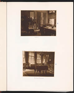 - Boven: Juffrouw Van Lier, inwonend lerares Duits aan de Middelbare Meisjesschool in het Steegoversloot. Onder: Lerarenkamer.