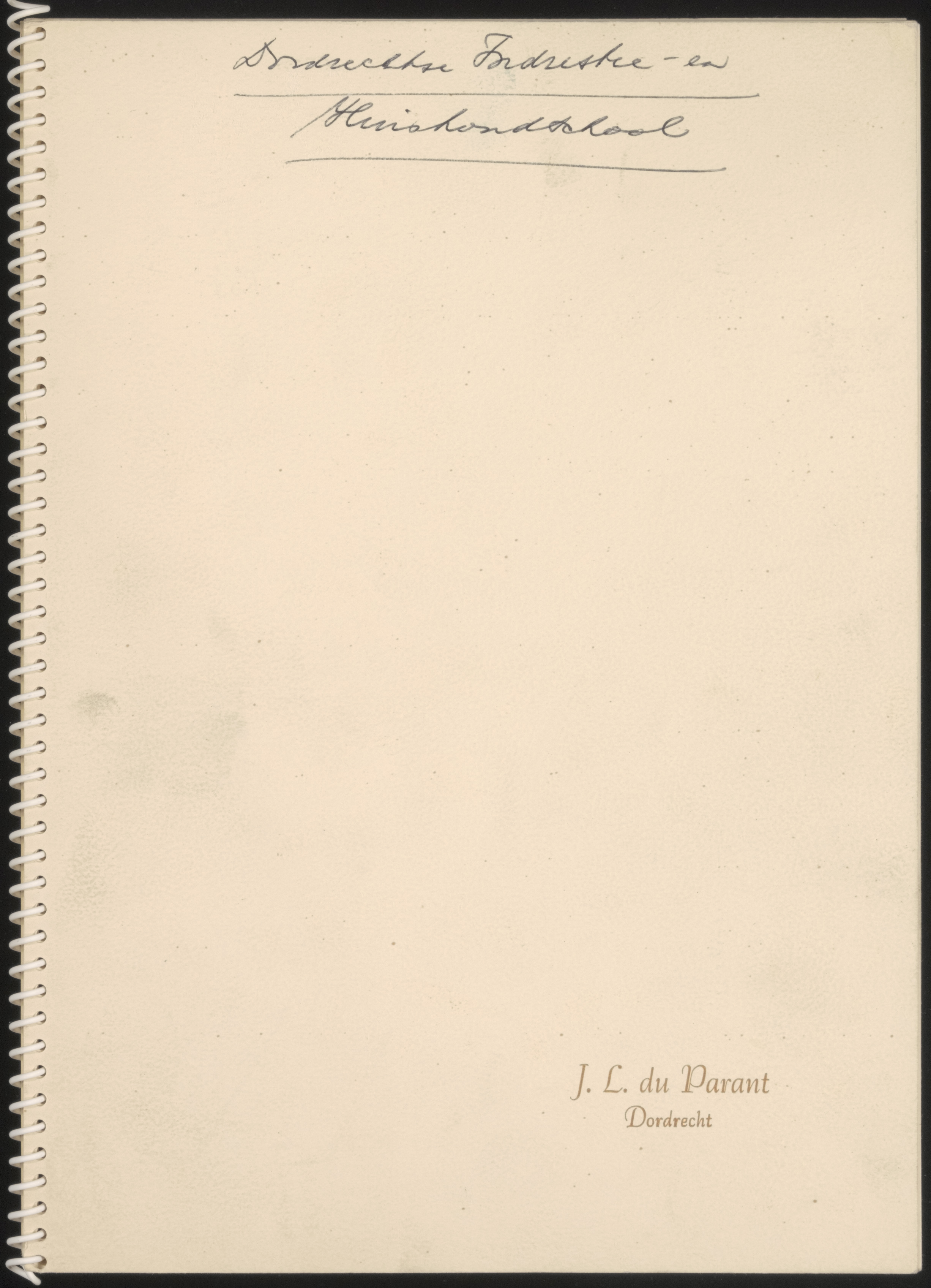 - Voorkaft van album met foto's van de Industrie- en Huishoudschool aan het Steegoversloot.