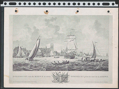 - Gravure naar een tekening van Dirk de Jong van zeilvaartuigen op de Oude Maas voor Dordrecht.
