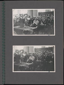 - H.H.K.K.H.H. prinses Juliana en prins Bernhard te midden van genodigden in de Grote Kerk tijdens een bezoek aan Dordrecht t.g.v. de 375e herdenking van de Eerste Vrije Statenverkiezing in 1572.