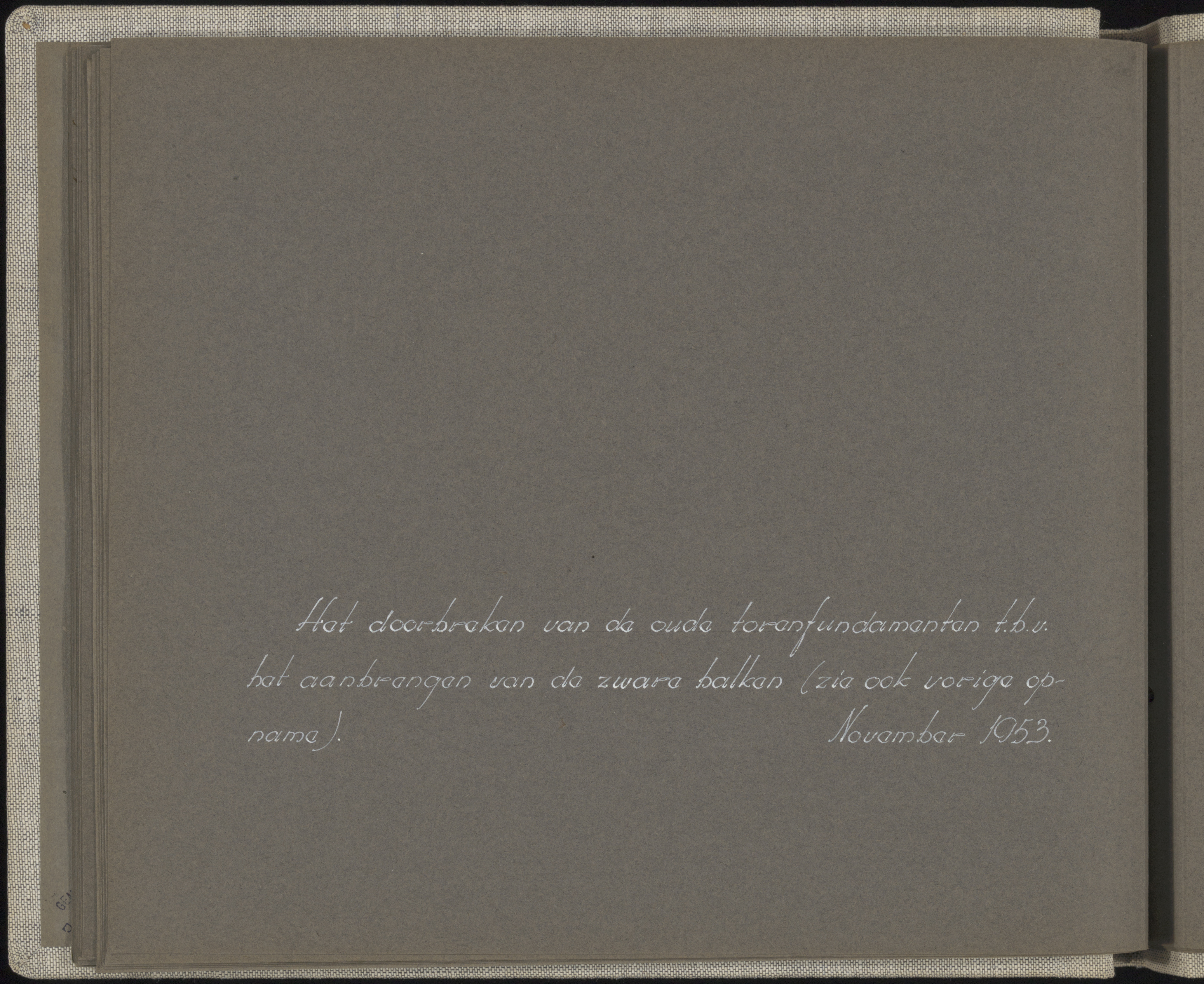 Het doorbreken van de oude torenfundamenten voor het aanbrengen van de zware balken. nov.1953