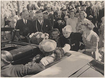 - burgemeesters klederdrachten koninklijke bezoeken publiek / toeschouwers