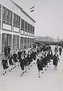 - Leerlingen van de Industrie- en Huishoudschool Doelesteyn aan het Steegoversloot nemen deel aan de Victoria Paasmars voor de fabriek aan de Korte Parallelweg