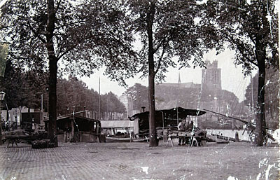 - Nieuwe Haven met de Aardappelmarkt op de voorgrond. Links de Knolhaven met een visvlot.