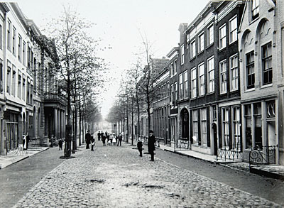- Het Steegoversloot vanaf de Doelstraat in de richting van de Vest. Links op de voorgrond gebouw De Toekomst, daarna de pilaren van het gerechtgebouw.