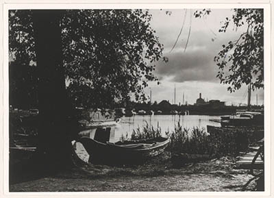 - Gezicht over de Tweede Jachthaven naar het westen op o.a. het Wantijbad en de watertoren.