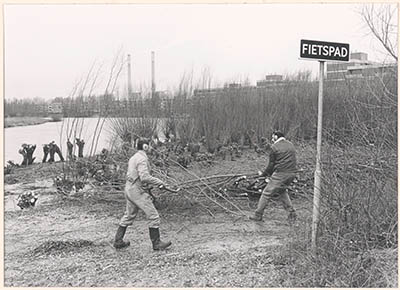 - arbeiders / werklieden fietspaden knotwilgen wegenbouw