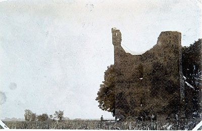 Gezicht op de ruïne van Huis te Merwede temidden van het riet