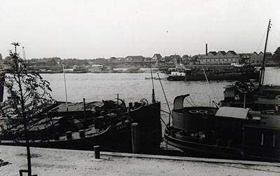 - Gezicht op de Oude Maas en Zwijndrecht vanaf de Buiten Kalkhaven, ter hoogte van de toenmalige stoom-houtzagerij Visser in Zwijndrecht.