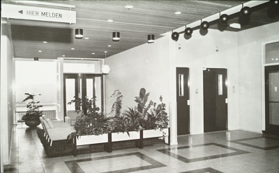 Hal met liften in prot. chr. bejaardentehuis Vreedonk aan de Beukenlaan. Na de …