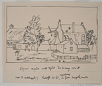Tekening van het huis Boucquet, gezien vanuit het westen, dat zich bevond in de directe …